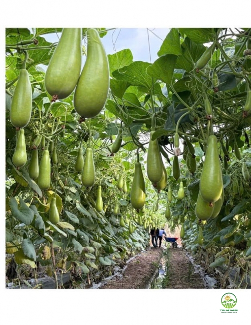 Trái bóng đẹp, có màu xanh sáng, trái hình trụ, thon dài 25-30cm, khối lượng 700-1.100gr/trái.